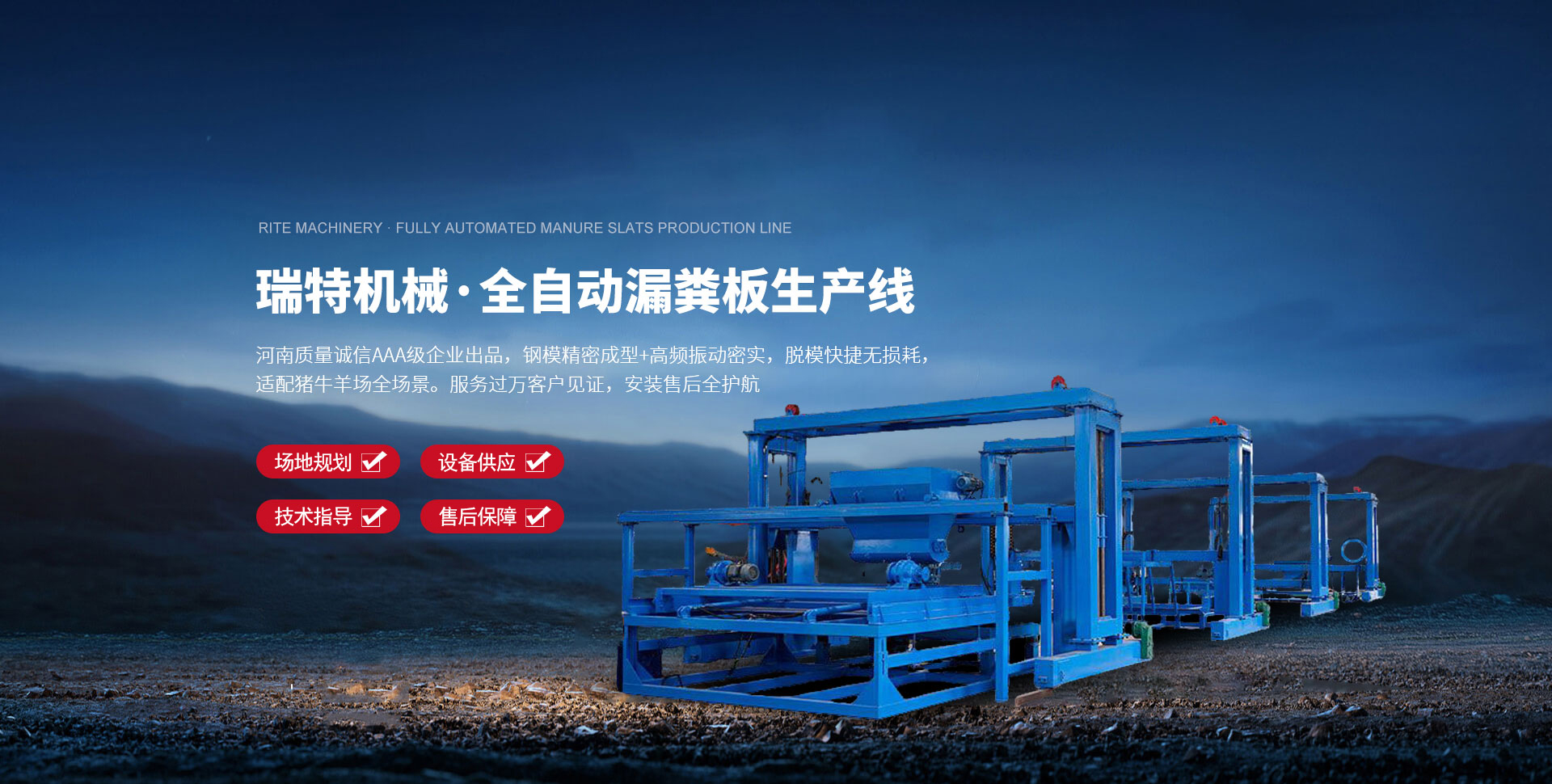主營(yíng)漏縫板生產(chǎn)線、漏縫板模具等核心產(chǎn)品,針對(duì)預(yù)制混凝土及畜牧養(yǎng)殖等場(chǎng)景定向研發(fā)。